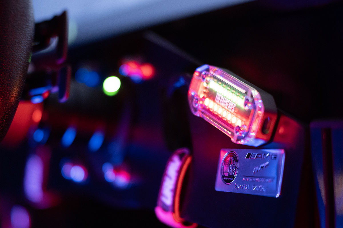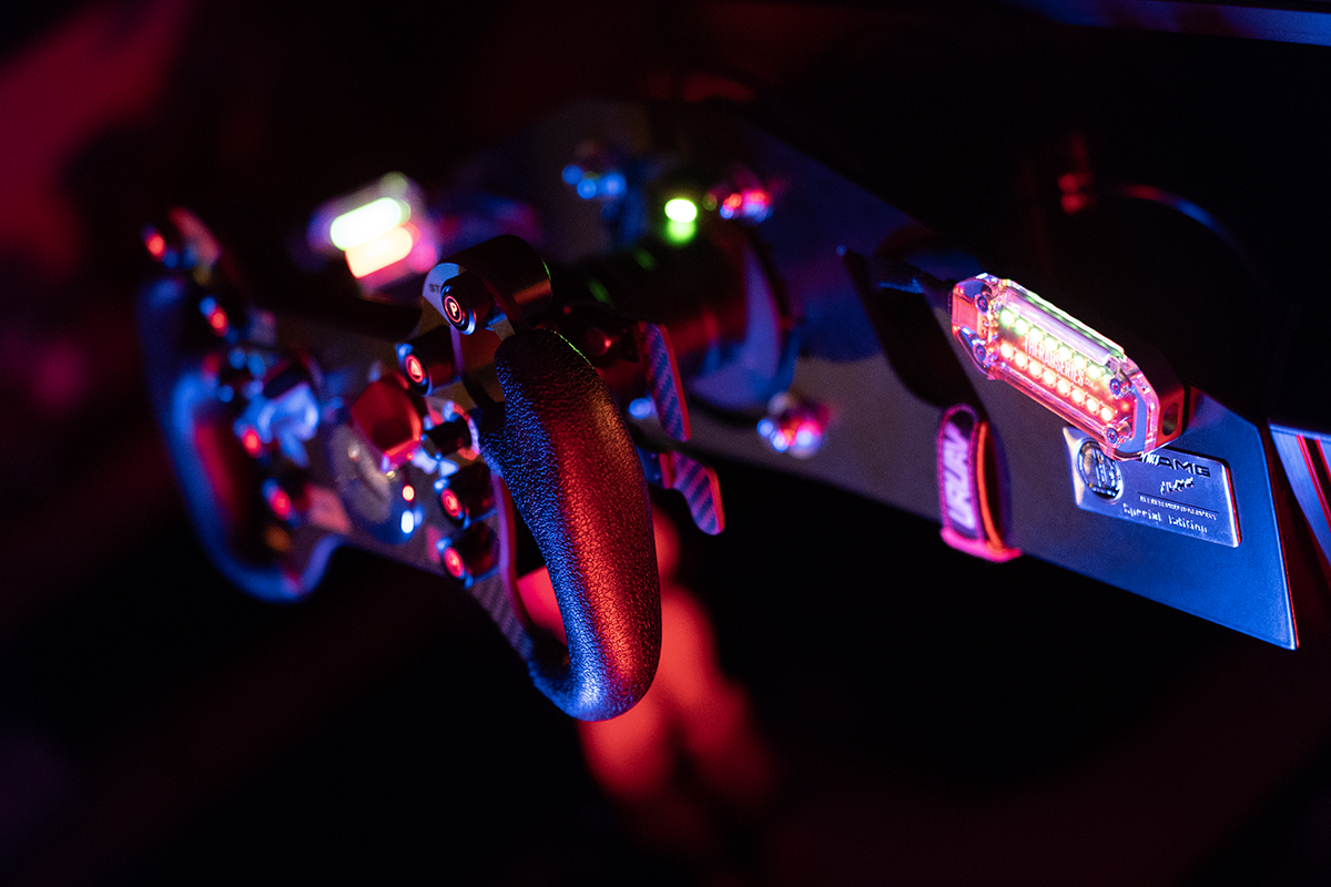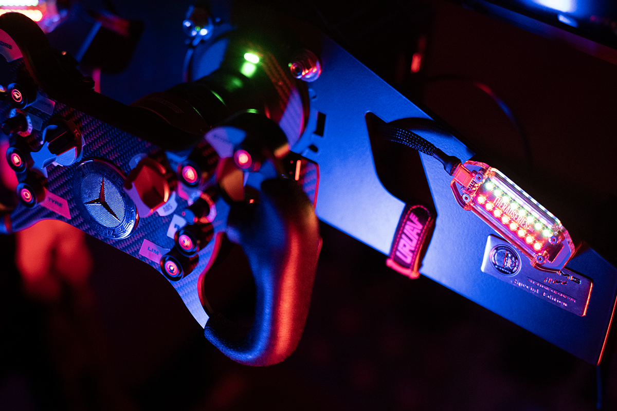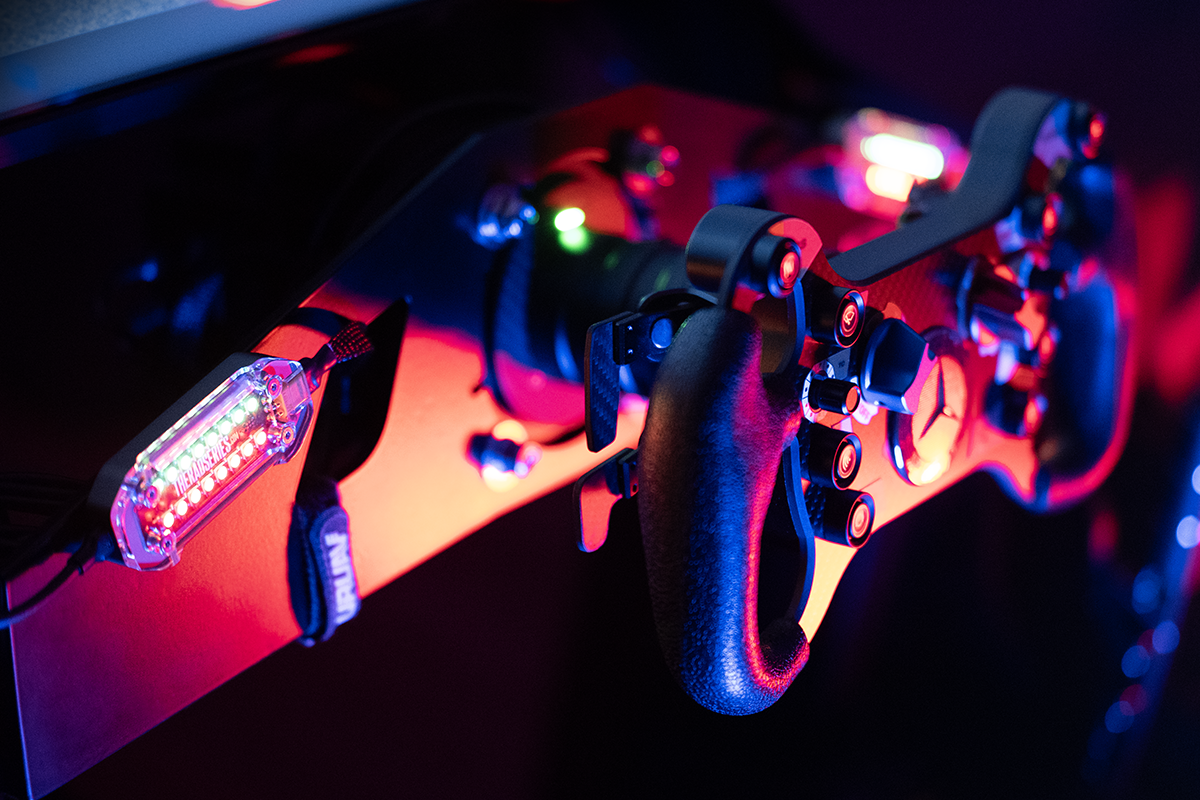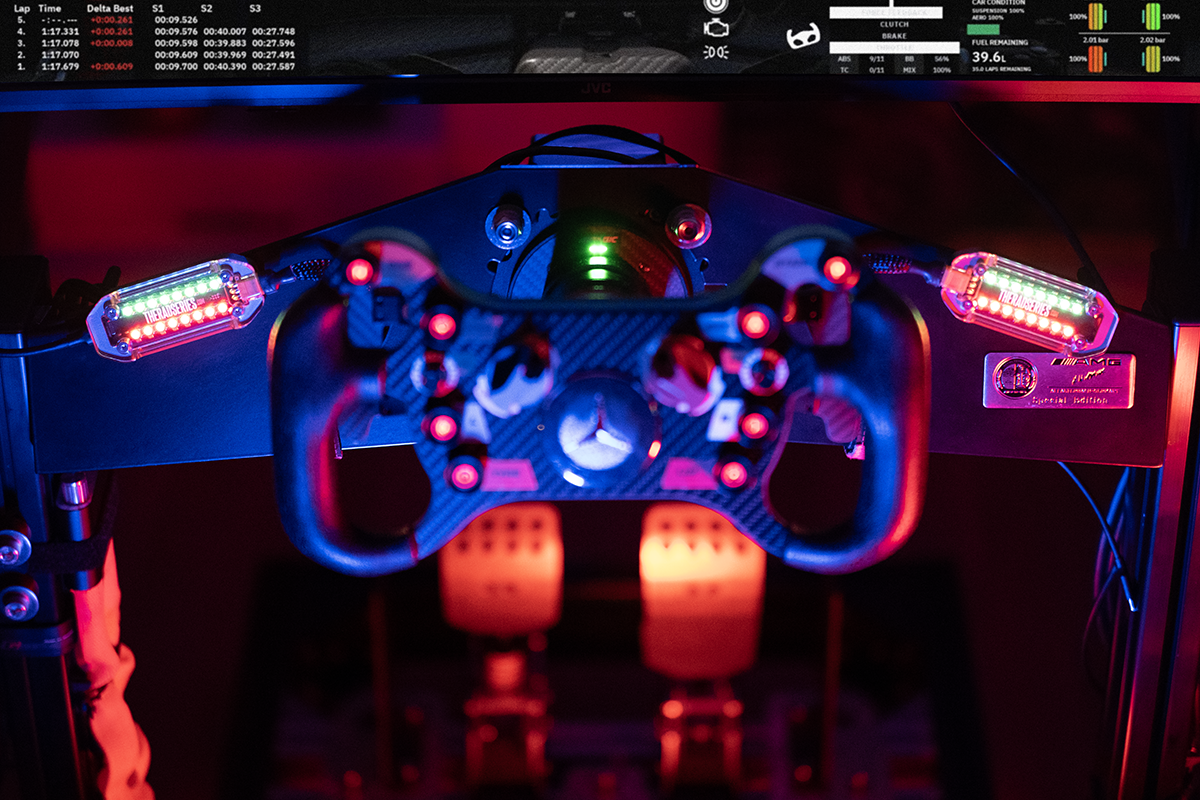 copper plated, premium quality black PCB with custom graphics and top quality components. USB port on the side of the unit, to keep it relatively flat and close to your simracing rig, frame or screen