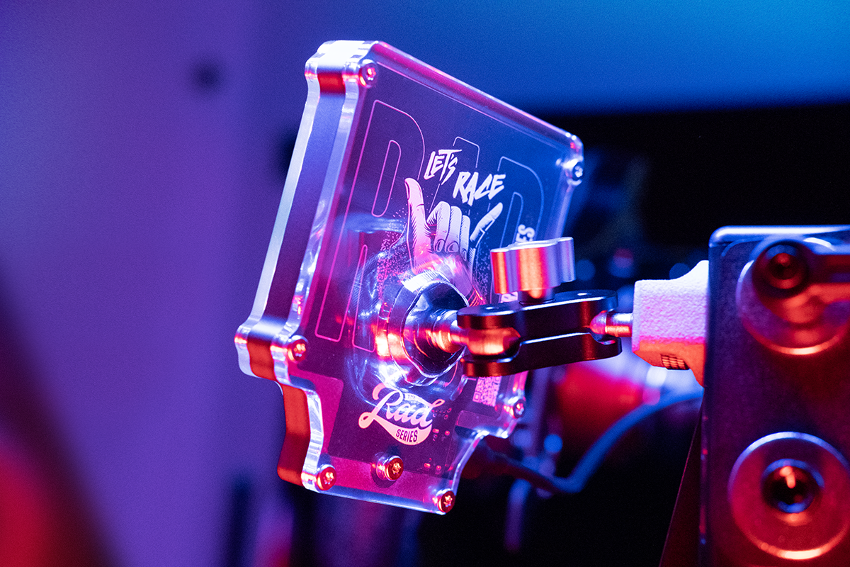 copper plated, premium quality black PCB with custom graphics and top quality components. USB port on the side of the unit, to keep it relatively flat and close to your simracing rig, frame or screen